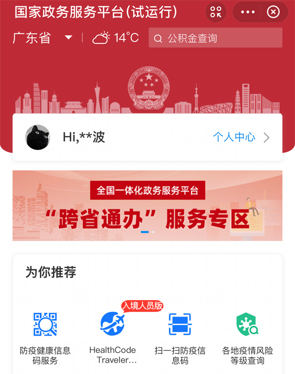 2、點擊國家政務服務平臺進入小程序頁面,可以找到防疫健康信息碼的登記入口;