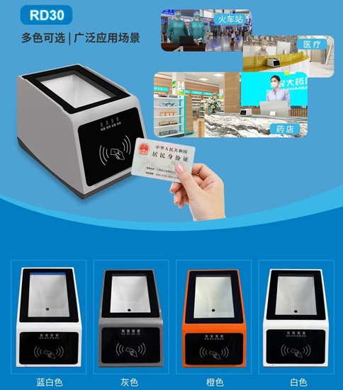RD30健康碼核驗終端能夠自由選配身份證閱讀功能,準確核驗二代身份信息!老人小孩可以刷身份證調用健康碼,快速識別健康碼狀態以及查看核酸等信息,核驗速度快,準確率高,能高效篩查出異常情況。同時解決了目前單純依賴手機掃碼過程中,因為手機沒電、故障等突發狀況而無法出示健康碼的難題,特別為老人、兒童等不使用、不會操作智能手機的群體“升級”便利。