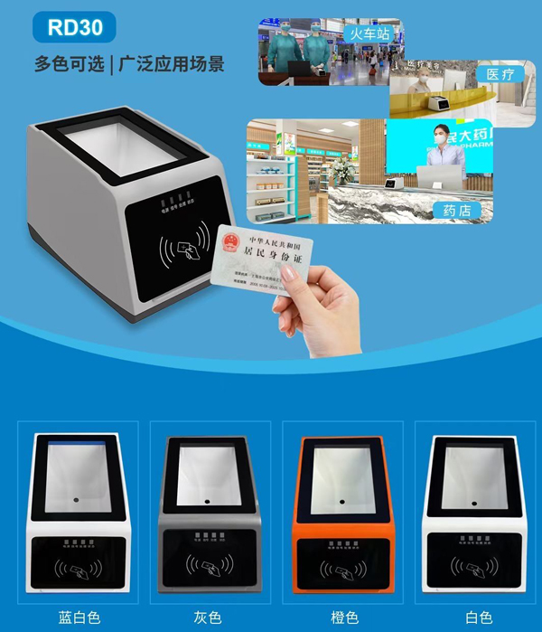RD30健康碼核驗盒子外形酷似一臺超市二維碼掃描器盒子,可以隨時移動安裝部署,機身上內置有掃描器、身份證閱讀器及指示燈等,通過配置的數據通訊接口(USB與UART/TTL)及線纜能以外接的方式讓屏幕實時顯示健康碼狀態及核酸48小時檢測結果,確保了“查酸+健康碼”的準確性,并語音播報預警,快速核驗通行。據了解,該健康碼核驗終端能夠為日常的防控查驗工作提供便利,市民在使用該設備時,利用內置的身份證閱讀模塊或二維碼掃描頭模塊,自行掃描身份證或出示手機健康碼掃碼核驗,即可檢測實時的健康碼狀態、核酸檢測信息等。