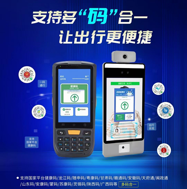 目前該系列的健康碼手持核驗終端支持國家平臺健康碼/龍江碼/隨申碼/粵康碼/甘肅碼/贛通碼/安徽碼/天府通/閩政通/山東碼/安徽碼/內蒙碼/蘇康碼等“多碼合一”,核驗的準確度高,表現穩定,極大提升了防疫核驗效率,為實現精準防控、健康管理通行,打開新的智慧生活。