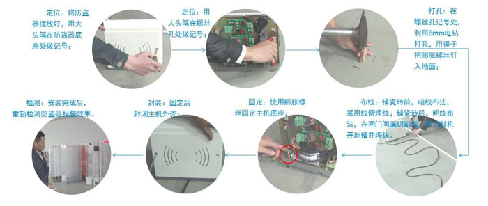 聲磁防盜門的安裝其實跟射頻防盜門的安裝差不多,設備的話只是固定而已;主要還是調試流程,聲磁調試基本上都是靠軟件進行調節,以下將介紹下工程設計及安裝標準。