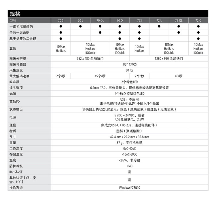 DataMan? 70 是緊湊型固定式讀碼器,對于一維和二維標簽碼可提供最高的讀取率。先進的成像技術和小巧的體積使 DataMan 70 成為慢速或高速制造和物流應用的理想解決方案。