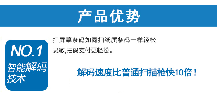 配備高智能掃碼芯片,獨(dú)特的紅光一維支付掃碼槍,可直接掃描手機(jī)屏幕上一維支付條碼;
