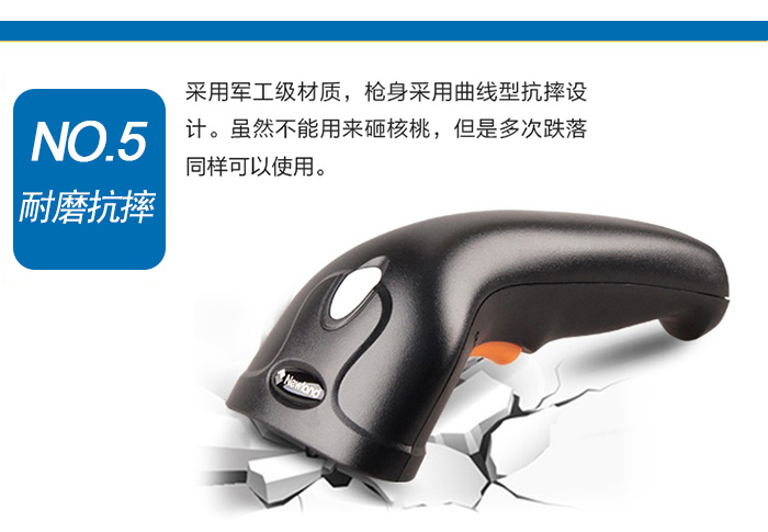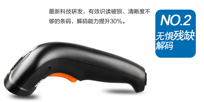 HR1200紅光一維掃描槍能夠輕松掃描污損碼、褶皺碼、模糊碼;