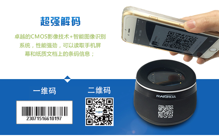 軟硬設備的高度結合,先進的智能圖像算法、芯片設計與制造工藝完美融合,搭載國際一流的二維條碼識讀引擎,可快速識讀最低亮度及各類貼膜的大數據量屏幕條碼,主要應用于營改增閃電開票、支付寶微信支付、二維碼票務檢驗、會議二維碼簽到等領域。