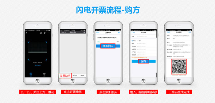 用戶只需打開支付寶或微信掃描柜臺上的二維碼關注其微信公眾號,通過“發票助手”輸入企業抬頭、企業稅號等信息,在確認開票信息無誤后提交開票申請,即自動將開票信息生成“開票二維碼”;最后一步將此“開票二維碼”置于RD4100極速開票終端上輕輕一刷就可極速開具增值稅專用發票了。一次錄入,反復使用,下次需要開票時向商家出示手機上的二維碼即可。